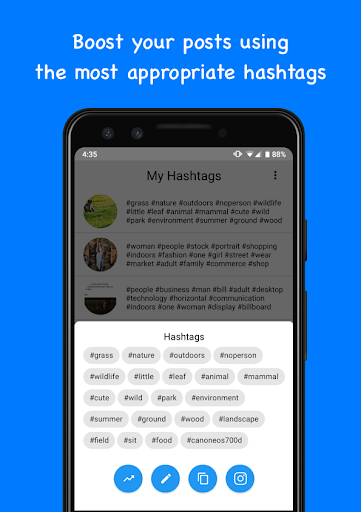 • Generate hashtags based on images.