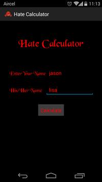 Bored with love calculators Check out hate calculator.Hate Calculator is a fun app for calculating hate between you and your buddy. Hate Calculator is showing hate with different smileys.