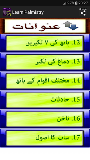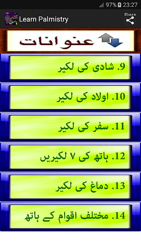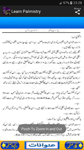 Ab Hath ki laeekron se apni qismat ka haal khud jaaniye. Learn Palmistry Complete Palmistry App in Urdu Feature of Learn Palmistry App Full Page navigation and Topic Navigation Zoom In Zoom Out View of pages Share it with Friend Feature Added