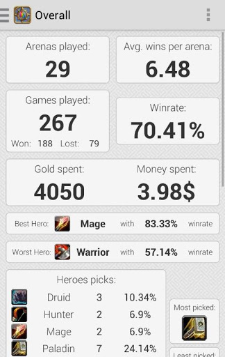 Hearth Arena Stats is an unofficial Hearthstone game app that helps players track and review Their efforts in the Arena.