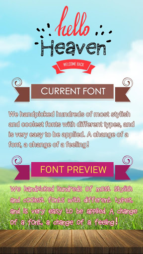 Heaven allows all users to change the system font of your phone or tablet 👌. Supported for devices which have FlipFont™ (Samsung Galaxy S3, S4, S5, Note, Note Ⅱ, Note Ⅲ) to change fonts perfectly or root access. This is absolutely the best installer FlipFont for android!