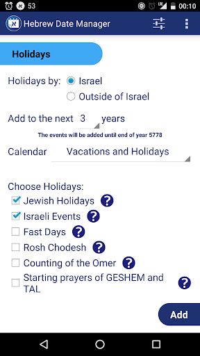 No more missing her / his birthday, no longer use various converters to find out when is the next holiday, fast, Rosh Hodesh or the Omer. From now on, there are no excuses. All events are in your calendar on their Hebrew date.