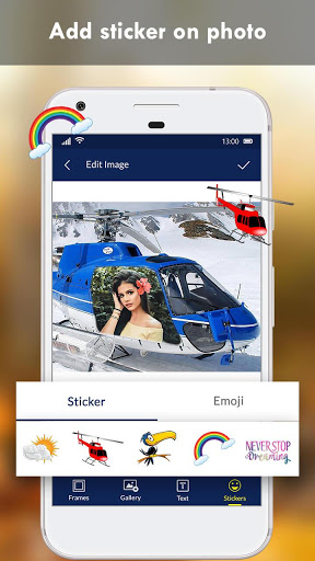 Helicopter Photo Frame imbibes frame-based helicopter background frames, wherein the image is directly placed into the frame section of the helicopter background theme.