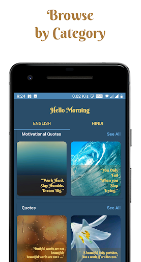 This app’s purpose is to motivate and inspire you to be the very best you can be, to be a better you. Through the Hello Morning - Motivational Quotes - we are able to share some of the world's best motivational quotes, curated and grouped together in categories around your needs.