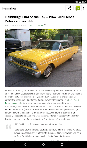 Browse thousands of the best vintage cars with the Hemmings app. Read Daily Stories and features from the collector car world written by award-winning journalists. Sell your classic car or part directly from your phone.