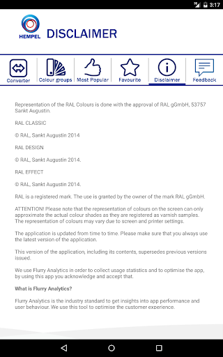 – Feedback - users can e-mail feedback to Hempel Marketing Europe.