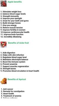 Another important thing about this app. You will get details about Fruits Benefits on Health. Here you will get details about all fruits and it's benefits on health such as apple, acke fruit, apricot.......z.