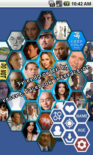 Hexter for facebook Set your Facebook friends on honeycombHEXTER analyzes your recent Facebook feed and sets your Facebook friends on Hexagons order by Facebook interaction.So your best Facebook friends are closer to you than the others.You can check information of friends about gender, profile, name, age, and relationship status.Also you can upload your honeycomb to Facebook and post friend39;s wall.Now, click your Facebook friends on HEXAGON