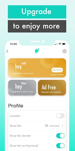 10 Super Invites 🚀 daily increases your chance of being accepted. Unlimited Conversations allows you to chat with more new friends at the same time. Accept missed invitations instantly, and remove ads that disturb you when you are chatting happily. Put on a fancy look 🏅 to enhance the attractiveness and the “Hey Gold Special” send two invitations at a time as well as an exposure boost 🔝.