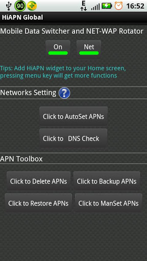 You can simply put it on the descktop and click it to turn onoff the mobile data, or to rotate APNAccess Point Name from Wap to NetRotating between APNs.Also you can set APN automatically by one click, support operators ALL OVER THE WORLD Badly suitable for travellers across operators, and the phone without APN settingsbackup amp; Recover APN information is also provided.Android ICS is supportedIf it helps, don39;t forget to share with your friends :Anytime you can download it via http:hidroid.netagFor chinese users, please search HiAPN. It is specially for China MainlandHongkongTaiwanquot;HiAPNquot;Keywords: APN, APN Brasil, APN switch, HK APN, APN Widget, APN setting, APN manager, APN Backup amp; Restore