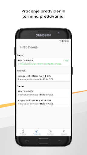 - Predavanja (lista svih predavanja u toku sedmice)
