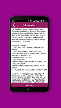 if spy camera or hidden camera and secret detective camera is in front of your mobile camera and you open the hidden camera detector app and it will start its function and propane leak detector device and anti-spyware will start beep sound. Hidden camera detected app acts as hidden camera detector by checking the magnetic field of cameras.