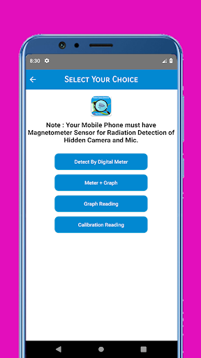 detect hidden camera from changing room. also detect emf and use as meter detector meter. emf detector meter and emf finder you can find through this app All Hidden electromagnetic field. other hand use as bug detector which shows the reading of hidden.
