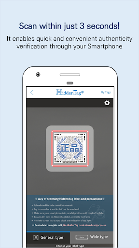 2. Scan the HiddenTag smart label and check the authenticity result.