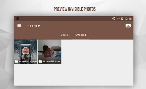 To unhide or restore them back to their original place just go to INVISIBLE section and enter a folder and you can select them and make them visible again in gallery.