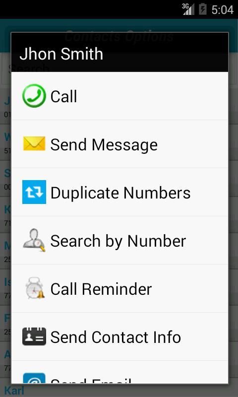 * Search on your contacts by number (sometimes useful if you don't know the name and you just remember a part of number).