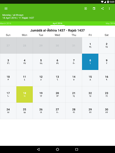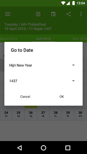 Islamic Calendar (Hijri) is an app for conversion from Gregory date to Hijri. A very useful app for our Islamic and Muslim community to determine the proper days on which to observe the annual fast (Ramadan) and to attend Hajj