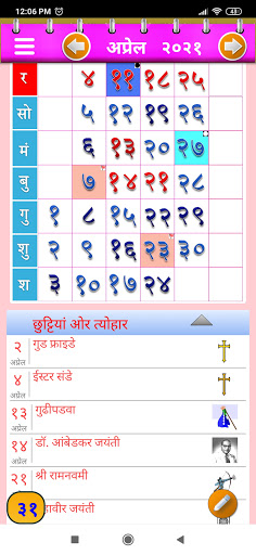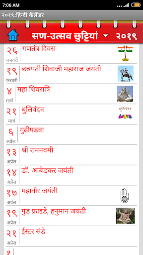 Hindi Calendar (हिन्दी कॅलेंडर):