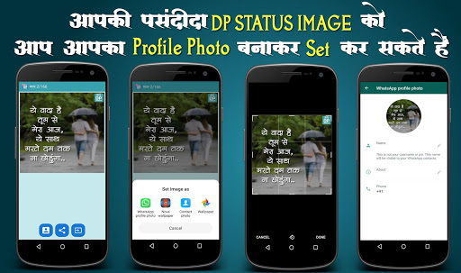 This app Contains Hindi DP Status Images. Using this app you can set profile photo for any social networking account in Hindi language.