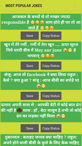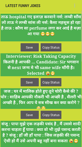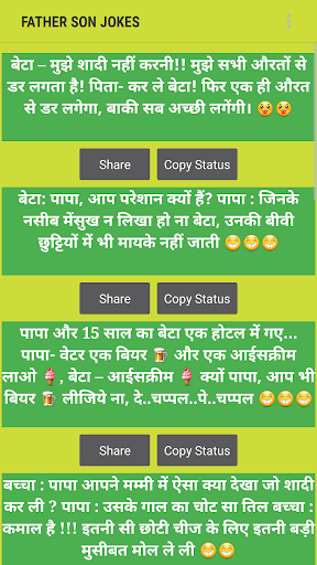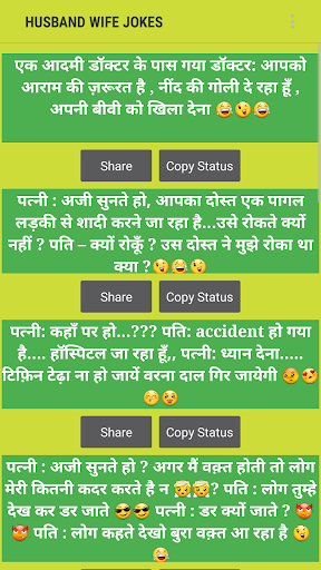 Hindi Jokes is a jokes application which provide latest Hindi jokes. Features of Hindi jokes Application:- #Free For life time #You can share jokes #You can copy jokes