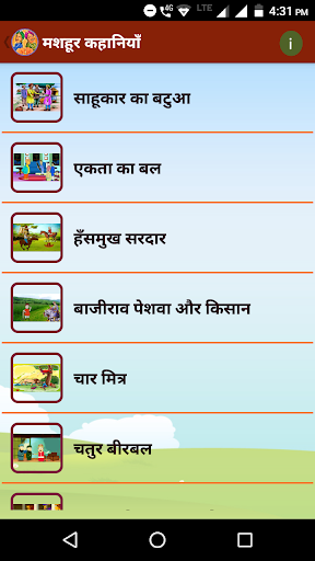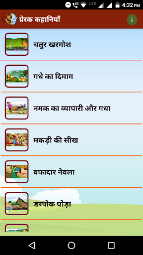このメッセージの物語は貴重な真珠です。私たちはこの貴重な真珠をあなたに捧げます。のどが渇いたカラス、ブドウ、ウサギ、タートルヒンディー語の物語があります!有名な物語、エンターテイメントの物語、やる気を起こさせる物語、魅惑的な物語は、このタイプのヒンディー語の物語です!マネーレンダーの財布、団結力、陽気なサルダール、バジラオ・ペシュワと農家、4人の友人、賢いビルバル、皇帝と老人、オオカミとフルート、猫とキツネはすべて楽しいヒンディー語の面白い話です!