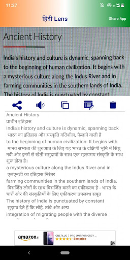 Click on the Play button; the app has the facility to read & speak text in Hindi.