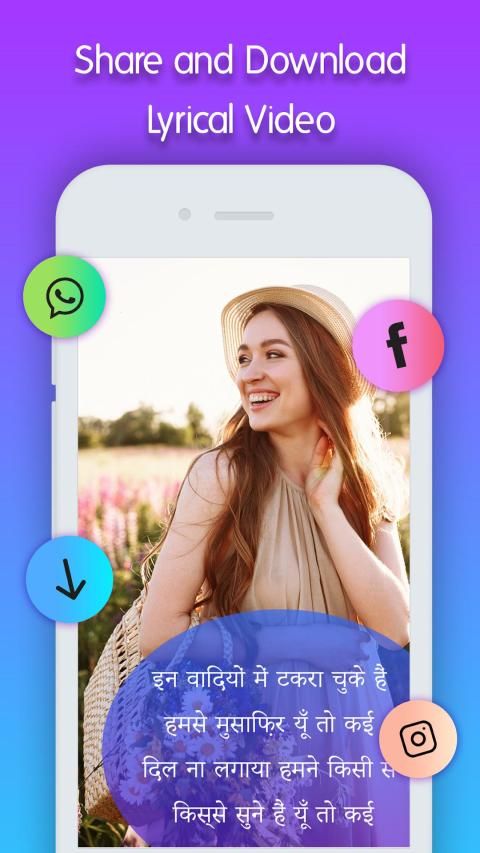 Hindi Photo Lyrical Video Status Maker have great collection of Hindi song lyrics select your favorite lyrics and add them on your pictures and make lyrical video of your own pictures and share your feelings with your love using your photo lyrical video. Create 30 seconds lyrical video. Share your created video via social media and its sure your words touch your loved ones heart by this video.