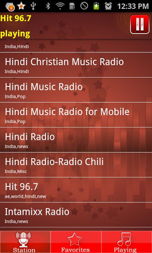 Listen to your favorite Hindi music radio station everywhere just with a single clickWherever you go, take the best Hindi music radio stations with you.If you would like to add your favorite station also,please write to us.