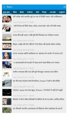 App includes almost all the major Hindi news as below: