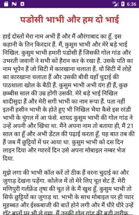 This app contain compilation of Indian Real Incident. It has lot of affair Hindi stories. It Include number of various hindi topics. It Involve desi Indian opportuneness of peoples in daily life. It also has a Hindi kahaniya selection for everyone.