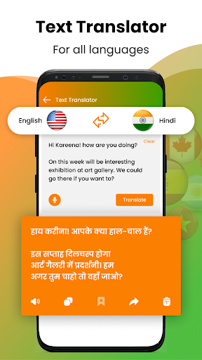 You will enjoy typing Hindi or English on this Hindi English translator keyboard. This Hindi English translate keyboard is design to be small and fast. Easy typing in Hindi or English with this free English Hindi translate keyboard. Hindi keyboard needs an internet connection to work. All language translator app can be used as Malayalam English translator and Marathi to English translator. Type or Speak in any language to convert it to your desire language. Hindi to English translation app came with an extra feature of dictionary English to Hindi. By using Speech to text and Text to speak you can easily translate any word by typing or by voice typing.