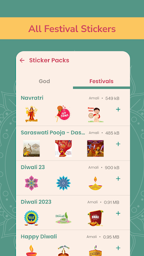 The app has multiple Hindu God sticker categories like Lord Siva, Ganesha, Hanuman, Krishna, Lakshmi, and many other Gods. And Hindu Festivals stickers for Diwali, Sankranti, Maha Shivratri, Krishna Janmashtami, Ganesh Chaturthi, Dusshera, and almost all the other Hindu Festivals.