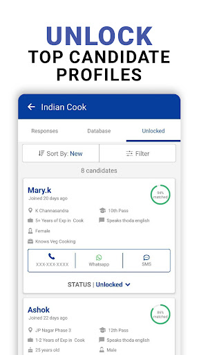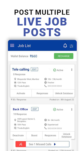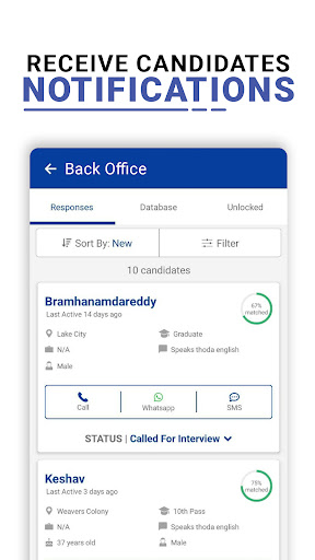 WorkIndia For Recruiters App is a one-stop solution for all your recruitment needs. Whether you want to hire a cook, driver, accountant, hairdresser, sales executive, tailor, photographer or a digital marketing executive, all you have to do is simply post your job requirements on our app! You will get calls from relevant active job seekers, and then you can hire them!