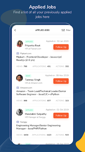 We are always looking to improve your experience. If you like the app, please take a moment to rate and write a review. In case you didn't like something in the app or had trouble with some feature, kindly mail us with the complete details (add screenshots, if possible) to "info@hirist.com" and we will get back as soon as we can with a resolution.