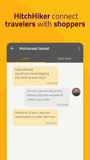 HitchHiker is a social network that connects Shoppers with Travelers.