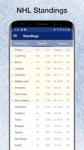 * View team standings by division or conference, including the latest playoff picture.