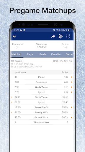 * Check scores of previous hockey games easily.