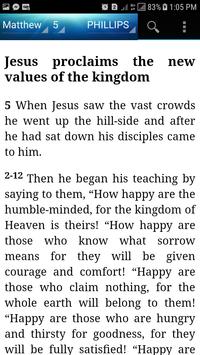 Holy Bible J.B. Phillips New Testament(English), is an android application, where the user can search by book, chapter, referring to the bible, does not need an Internet connection.