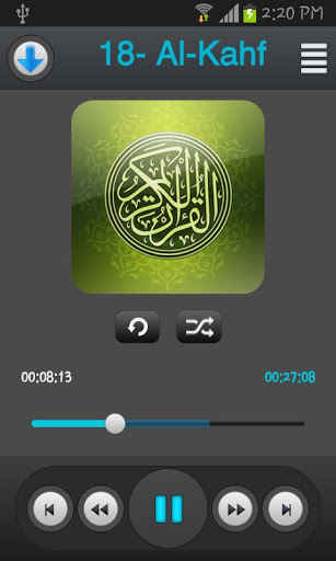 Holy Quran (Quran Kareem)Reciter: Ibrahim Al-AkhdarThis App has the following features:Ability to download one or multiple Sura(s).Share Sura via bluetooth or email Resume playing from last active session.Download All Quran to the mobile, so you can listen offline.Repeat Sura multiple time.Stop playing when somebody call you.Listen to the quran in background.Auto Shuffle between tracks.Auto advance to the next Sura.hide Ads appear on Free version by clicking on it.