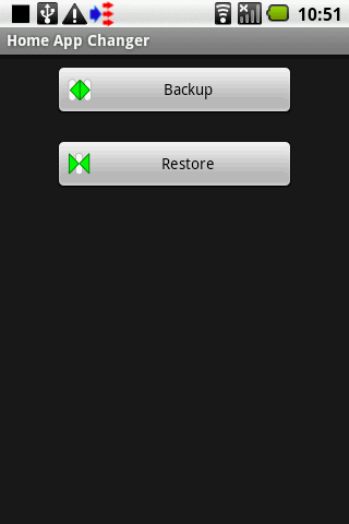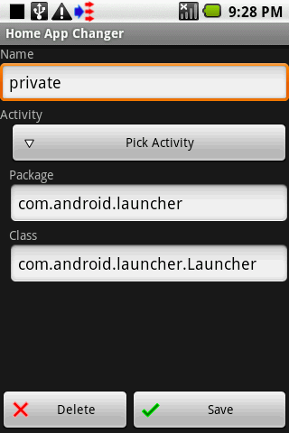 home application changer.Longtap Listitem do action.Receive Broadcast Intent :Action : quot;RabiSoft.intent.action.CHANGEHOMEAPPLICATIONquot;Extra Name: quot;namequot;Extra Value: registered namePlease use with for sendreceive intent quot;Intent to Intent Adquot; orquot;Intent to Intent Pro Adquot;.google group :http:goo.glJFtfL