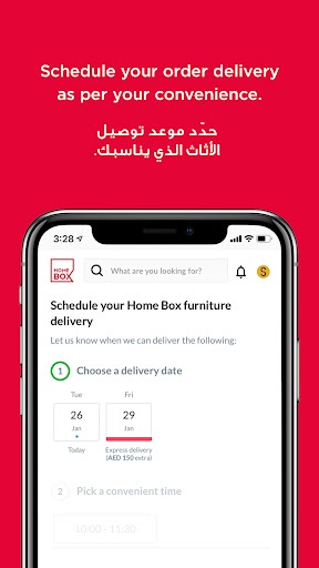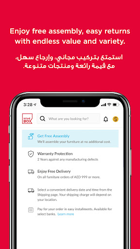 • حدد موعد توصيل الأثاث المنزلي الخاص بك بكل سهولة وراحة واستمتع بالتركيب المجاني.