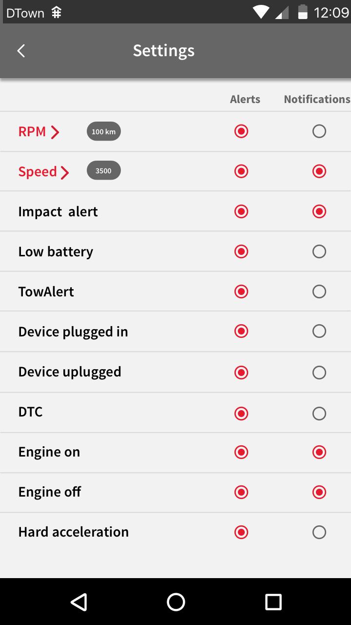 • Trip analysis: Trip by Trip analysis of driving behavior including route taken. Average speed and Idling time to optimize your drive. It also lets you know the stops being made or harsh driving.•Safety Mode: For Connected Car users, set a time limit to receive an alert if the vehicle is Switched ON.•Manage Notifications: You can now decide the notifications & alerts that you don’t want to see for each event.•Manage Limits: You can now decide your own Upper limits for RPM & Speed after which you should get an Alert / Notification.