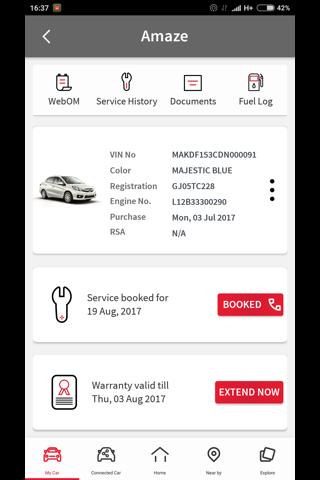 • App Tutorial: Get to know about the application on first usage / whenever needed.• Service Cost Calculator: Know about your expected expenses on the next service.• My Favorites: Arrange your most used features at one place.• Car calendar: Your car is your companion! This feature reminds you of insurance renewal & Pollution under check renewal.