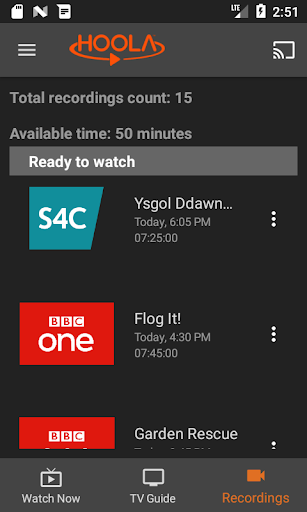 HoolaTV package options, including personal place-shifting, 7 day tv guide: