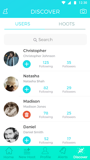 The Discover section is where you can browse through all public profiles and trending public hoots. To start following anyone, just add ( ) the user to your friend list.
