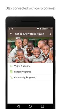 Connect and engage with the Hope Haven Rwanda app. Read about stories of HOPE, watch inspiring videos, give and much more! Partner with us as we transform Rwanda through Christ-centered education and discipleship.