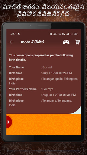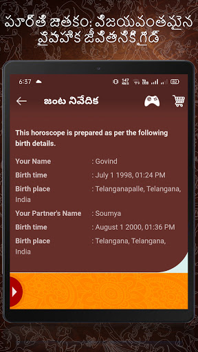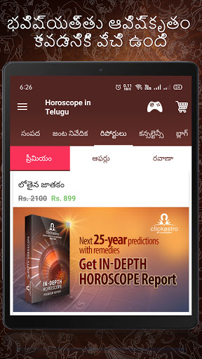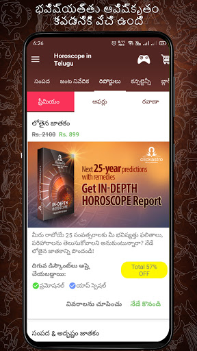• Free Reports: You can access free horoscope in Telugu based on Telugu astrology by date of birth. All you are required to do is just enter your name and accurate birth details and you are good to go. You can also now access free career and wealth horoscope reports on the app.