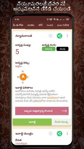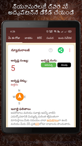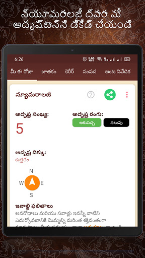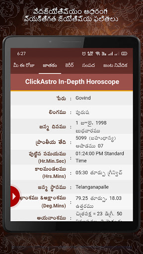 • Get daily horoscope in Telugu predictions based on your Sookshma & Prana Dasa.