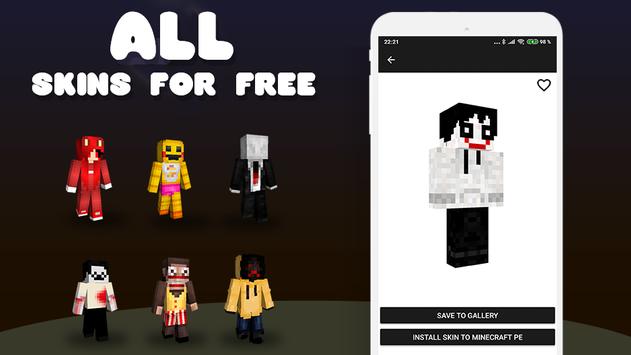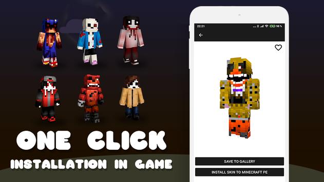 Installation horror skin with our app will not take much time! Just select your favorite skin, view it in 3D and if you like it, click on the "Set in MCPE" button and in a moment the skin will be right in your game!