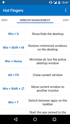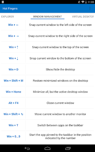 Hot Fingers – an application in Windows 10 style that contains a list of hotkeys by categories to memorize their purpose faster.